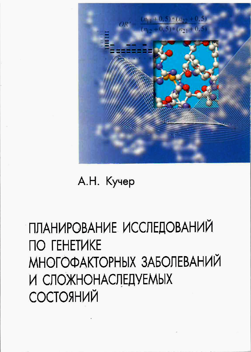 Кучер А.Н. Планирование исследований по генетике многофакторных заболеваний и сложнонаследуемых состояний. Серия «Наследственность и здоровье», Выпуск 13: учебное пособие / Под ред. академика РАН, проф. В.П. Пузырева. – Новосибирск: «Академиздат», 2015. – 88 с. ил. 12, табл. 19.