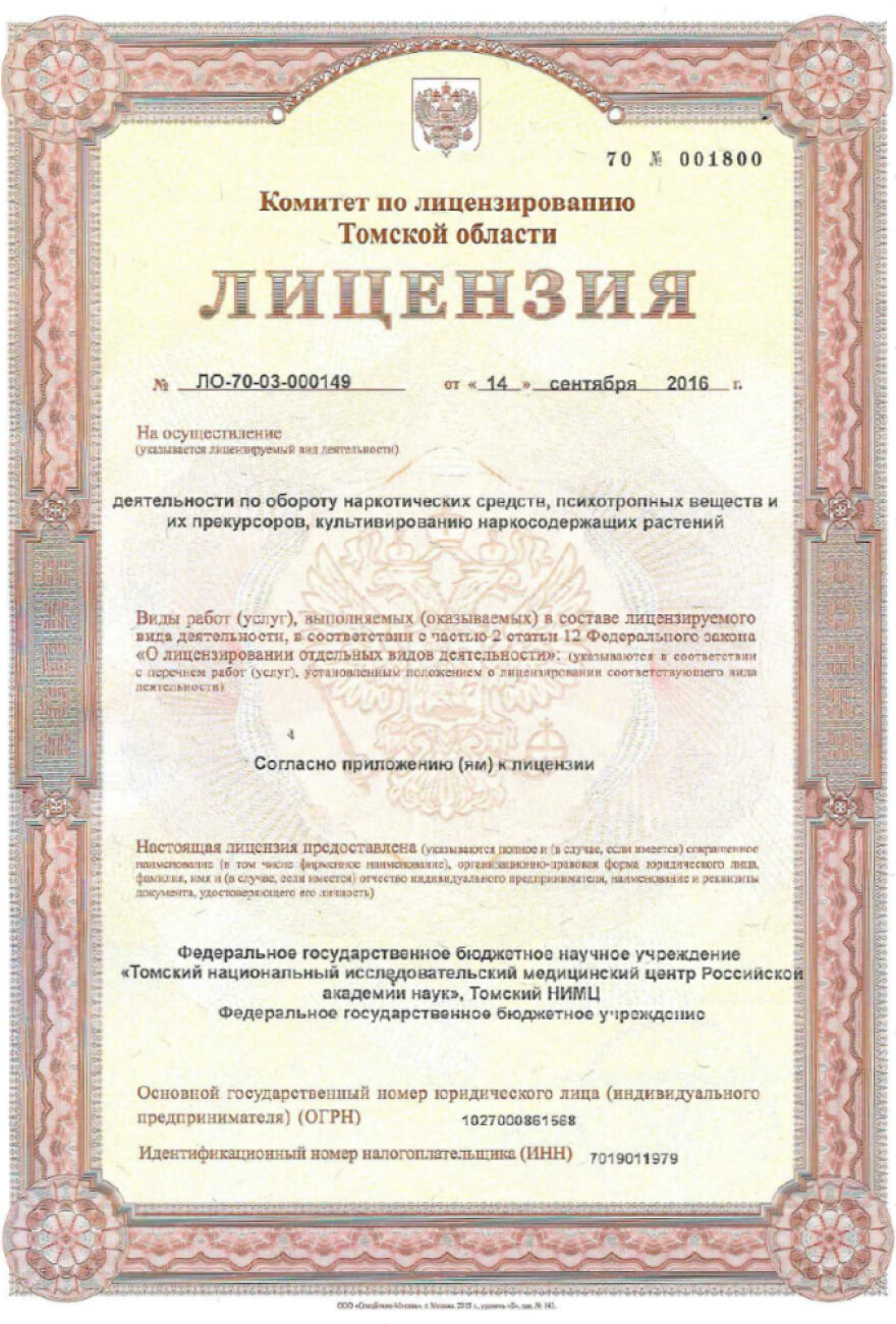 Лицензия на осуществление деятельности по обороту наркотических средств, психотропных веществ и их прекурсоров, культивированию наркосодержащих растений