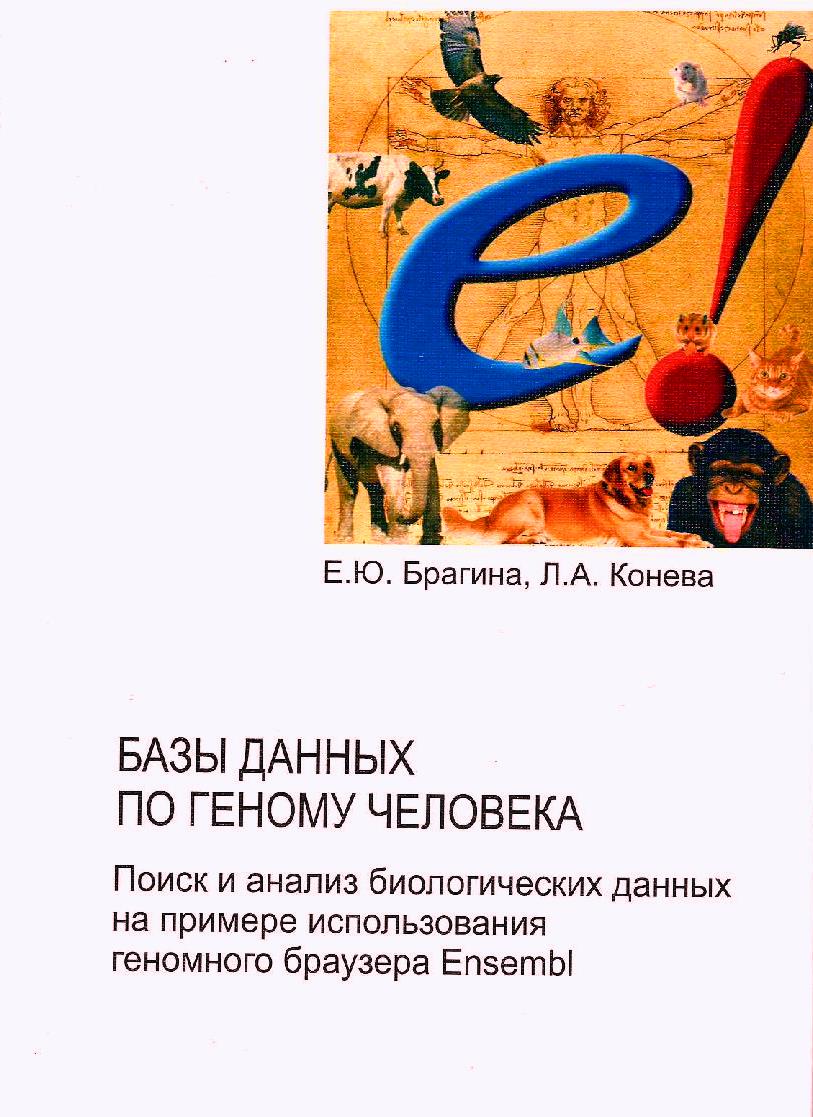 Брагина Е.Ю., Конева Л.А. Базы данных по геному человека. Поиск и анализ биологических данных на примере использования геномного браузера Ensembl (Наследственность и здоровье) Выпуск 9: учебное пособия  под ред. В.П. Пузырёва. – Томск: Изд-во «Печатная мануфактура», 2014. – 64 с.